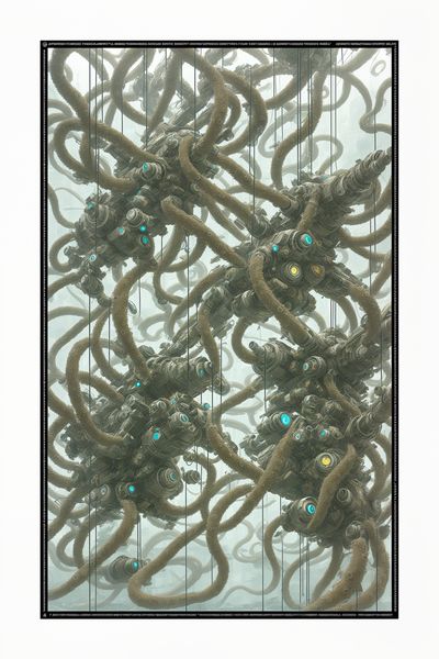 Gazing at an Ultrabionika piece entails more than just witnessing AI’s output. The image’s very essence takes form through a careful choreography of algorithms that set the stage. Every element’s placement in these artworks is meticulously governed by a collective of algorithms working in harmony.