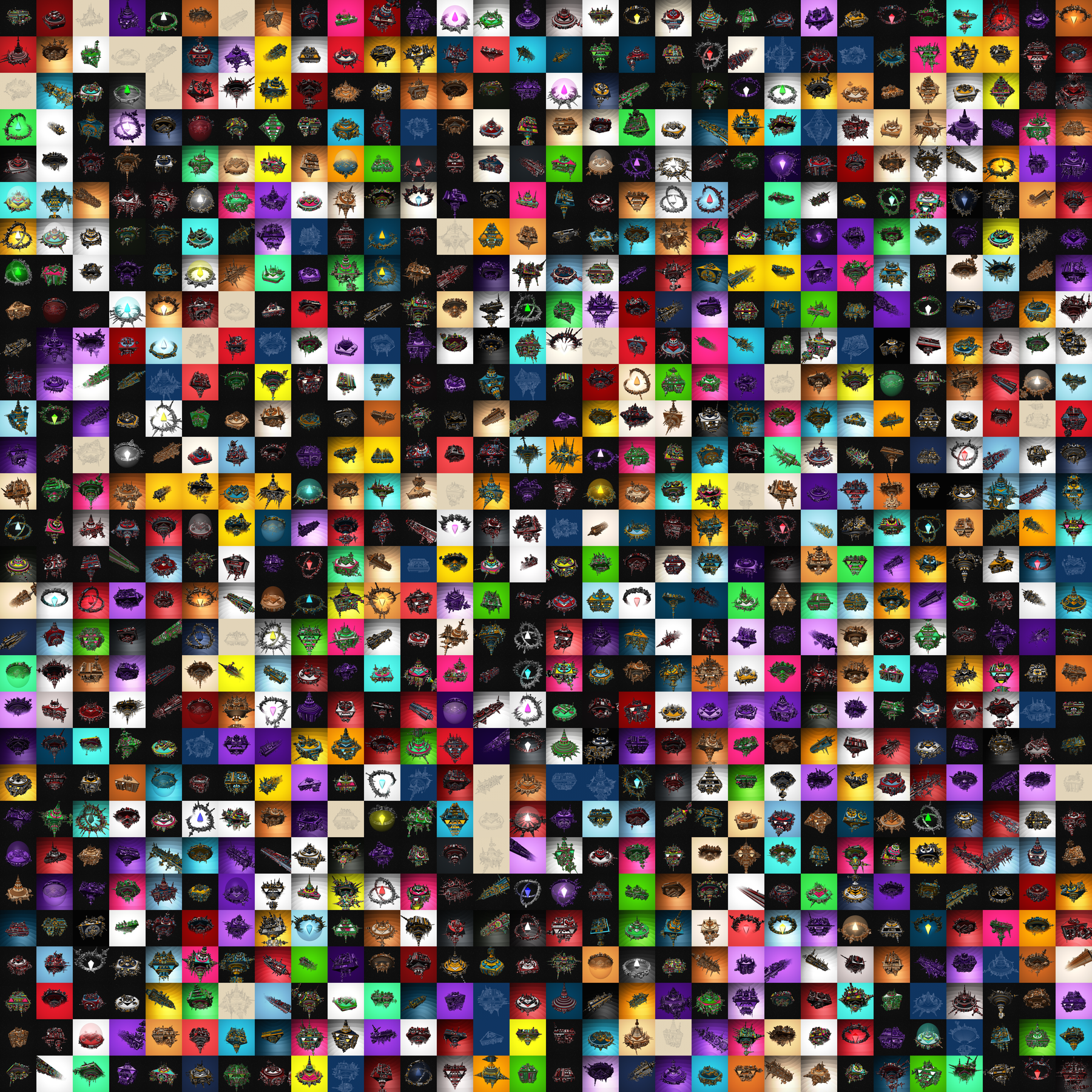 From 2D geometric patterns to 3D sci-fi buildings and on-chain Stations next pictures show the evolution of this kind of generator.